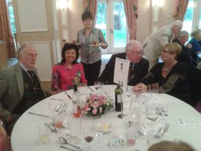 What a splendid afternoon – the secret entertainer was an opera singer: Fabienne Borget. We had excerpts from Godfather, Traviata, La Bohème, Figaro, Carmen, Turandot, Merry Widow, My Fair Lady and ended with Andrea Bocelli’s Con te partiro (Time to say goodnight). And as she sang, Fabienne told us her story, and visited each table, clinking glasses and kissing the gentlemen – oh what blushes!